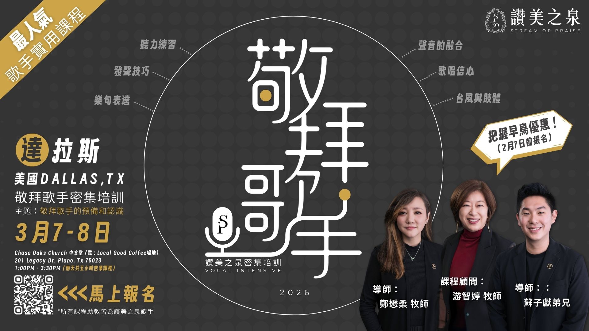 專為敬拜歌手所設計的歌唱密集課程